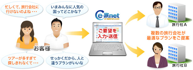 そこで、こだわりの旅がしたいお客様と、豊富なプランを持つ旅行会社を、e-旅ネットが橋渡し。